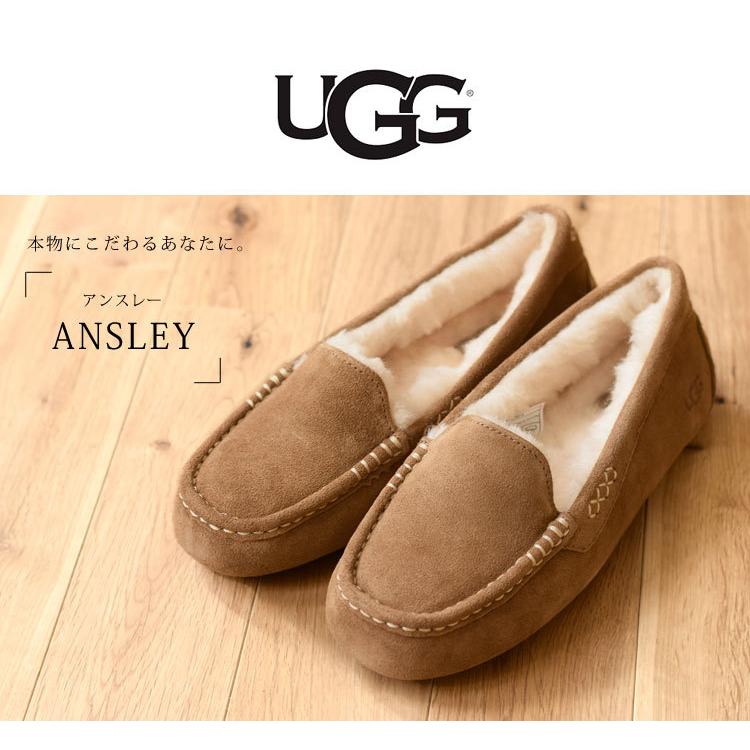 セールsale Ugg モカシン アグ アンスレー Ansley スリッポン レディース 冬用 冬 ムートン おしゃれ ブランド もこもこ シープスキン スエード ローファー ぺたんこ 歩きやすい 撥水加工 防寒 靴 フラット 羊革 本革 黒 ブラック ブラウン チェスナット クリスマス